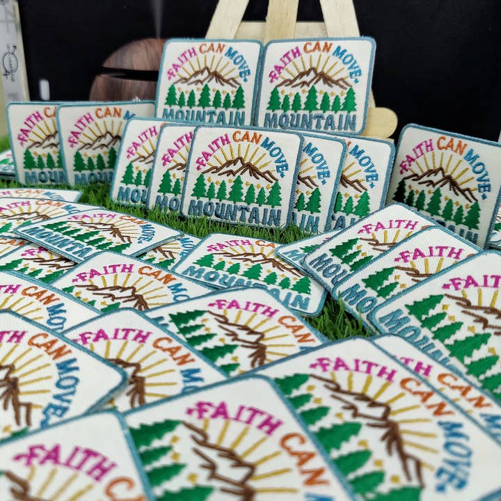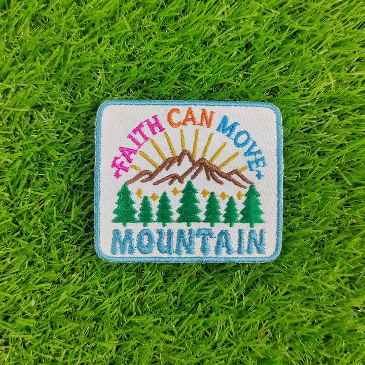 Scale new heights with unwavering belief. This 2.25-inch embroidered patch features the powerful phrase “Faith Can Move Mountain” stitched in vibrant pink, orange, blue, and teal. Above the text, majestic mountain peaks rise beneath golden sunbeams and evergreen trees—capturing the spirit of Matthew 17:20 in bold, inspiring color.